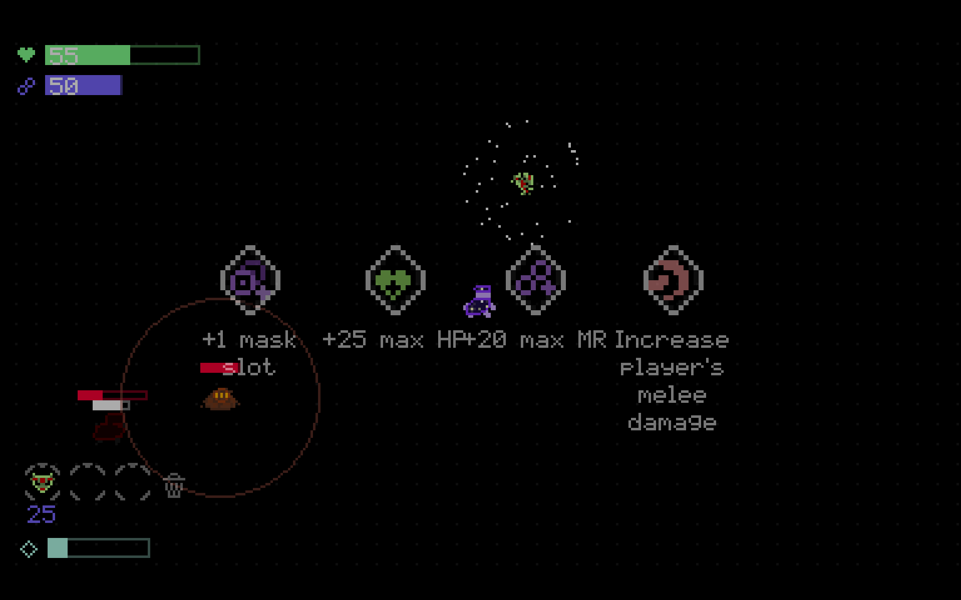 Draw your masks and bring them to life with MR. You can obtain new masks by manually defeating creatures. Also you can replace another creature's mask with your own with a small chance by throwing it directly into them.
